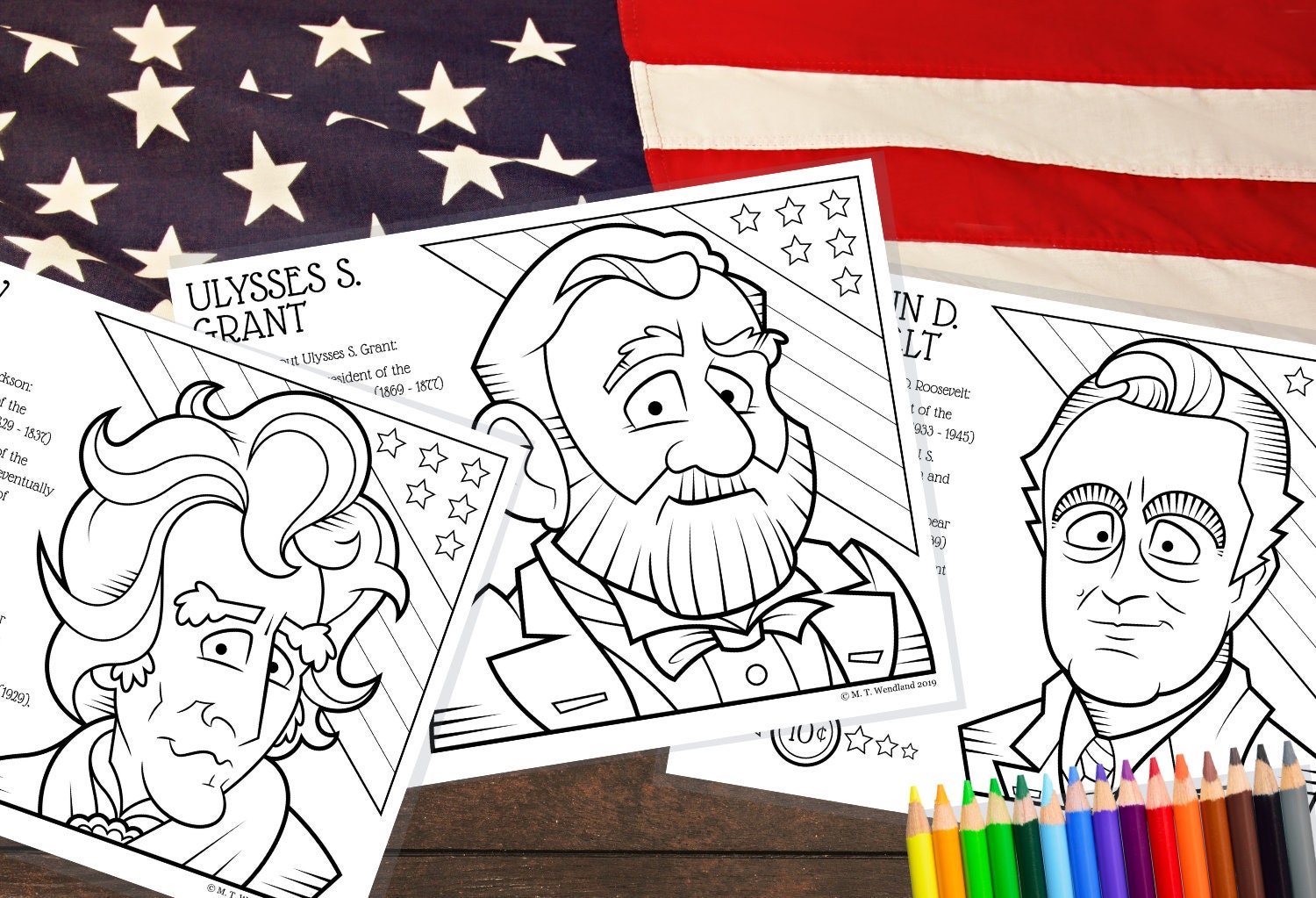 Printable President Coloring Pages History For Kids Crafts Etsy